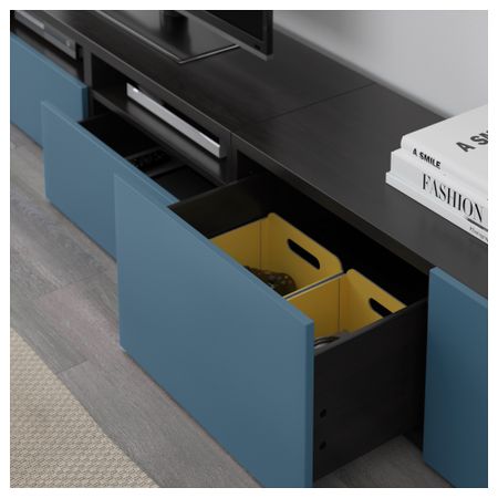Шкаф для ТВ, комбинированный, стекляные дверцы БЕСТО, черно-коричневый Вальвикен, темно-синий прозрачное стекло (240x40x230 см)