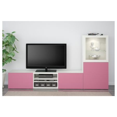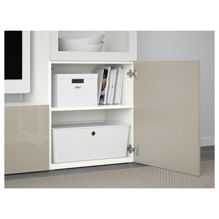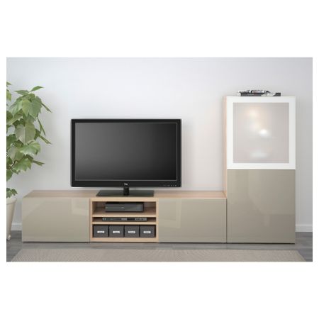 Шкаф для ТВ, комбинированный, стекляные дверцы БЕСТО, черно-коричневый, Сельсвикен глянцевый/черный дымчатое стекло (240x40x128