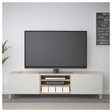 Благодаря интегрированному нажимному механизму ящики открываются легким нажатием. Благодаря нескольким отверстиям на задней панели тумбы под ТВ провода от телевизора и других устройств всегда будут под рукой, но не на виду. Размер: 180x40x48 см