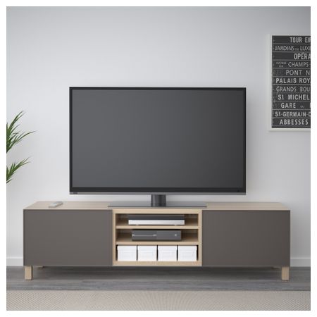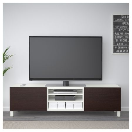 БЕСТО 491.885.62 Тумба для ТВ с ящиками, черно-коричневый, Сельсвикен глянцевый/черный (180x40x48 см)