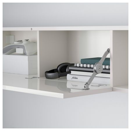Благодаря доводчикам ящики и дверцы закрываются плавно и бесшумно. Пульт дистанционного управления работает через стекло. Размер: 180x20/40x166 см