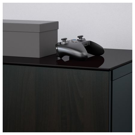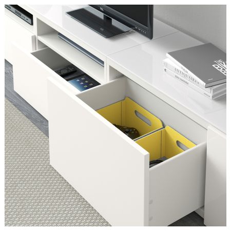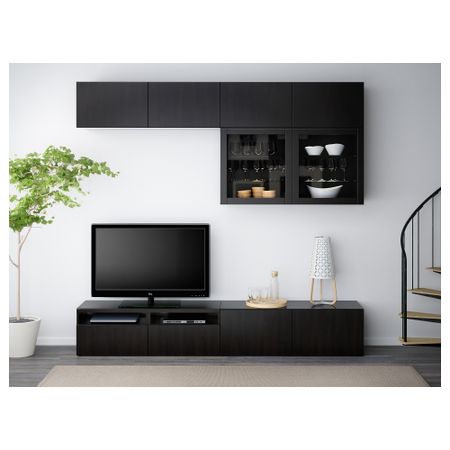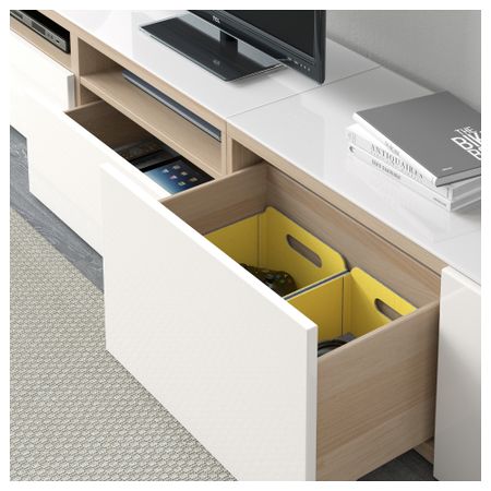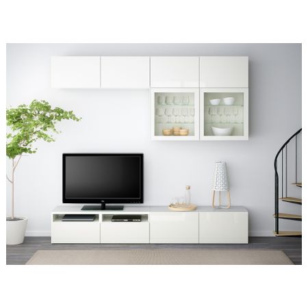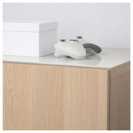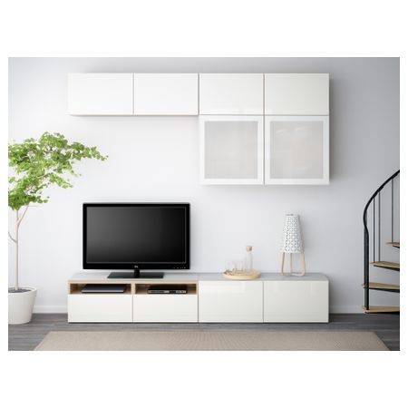 Шкаф для ТВ, комбинированный, стекляные дверцы БЕСТО, под беленый дуб, Сельсвикен глянцевый/белый матовое стекло (180x20/40x166