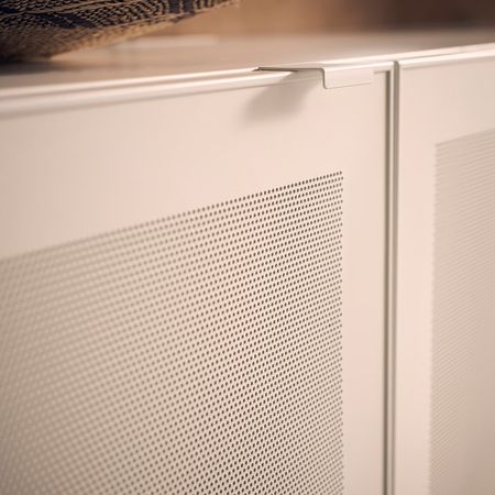 Сетчатые металлические дверцы пропускают сигнал от пульта, поэтому за ними можно разместить электронное оборудование.Чтобы подчеркнуть современный и лаконичный стиль интерьера, тумбу под ТВ БЕСТО можно закрепить на стене.