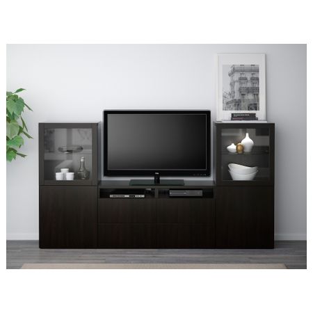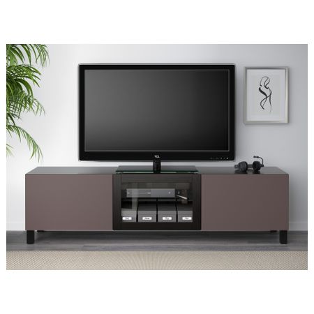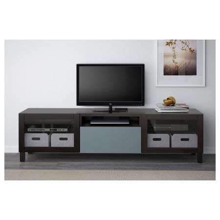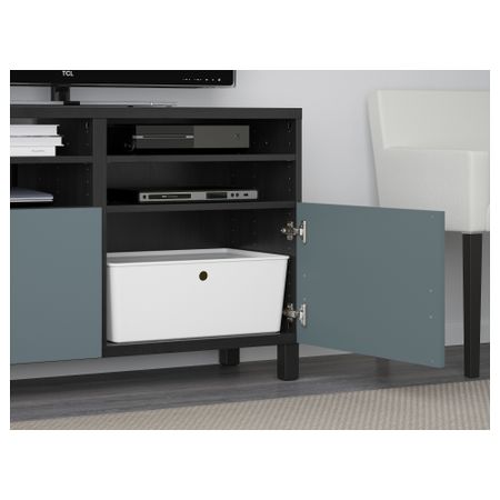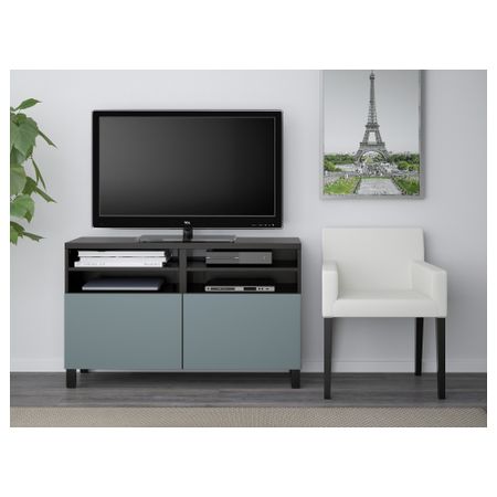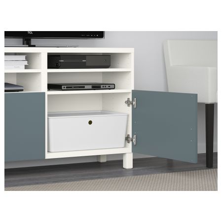 Тумба под ТВ, с дверцами БЕСТО, белый, Вальвикен серо-бирюзовый (120x40x74 см)