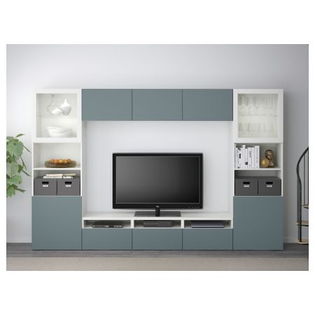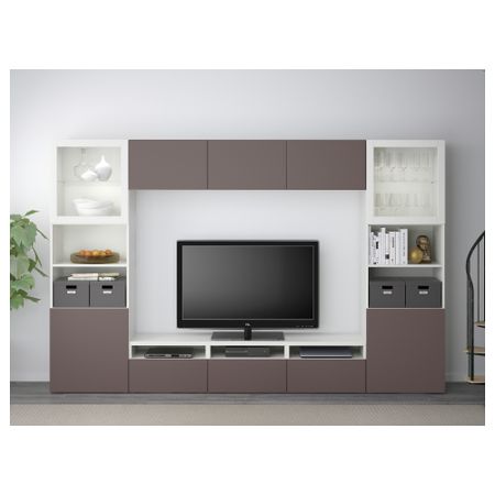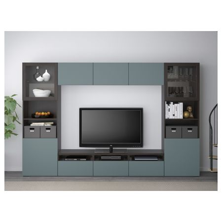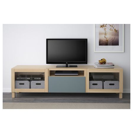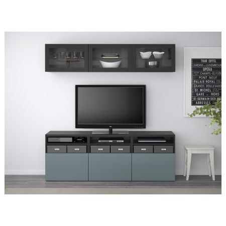 ТВ БЕСТО 691.361.43 Тумба под, под беленый дуб, Вальвикен темно-коричневый, прозрачное стекло (180x40x48 см)