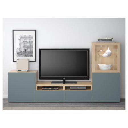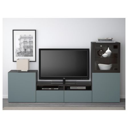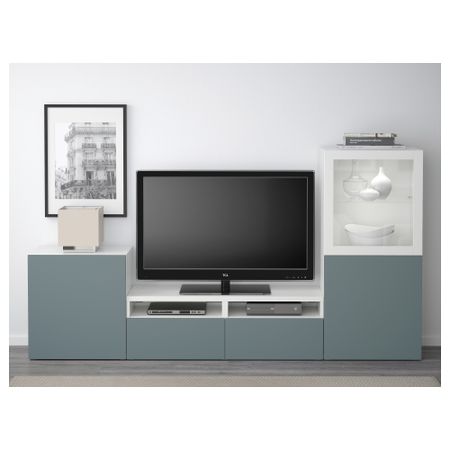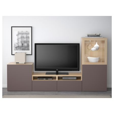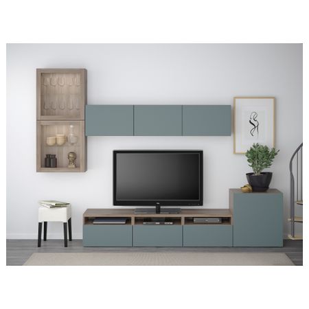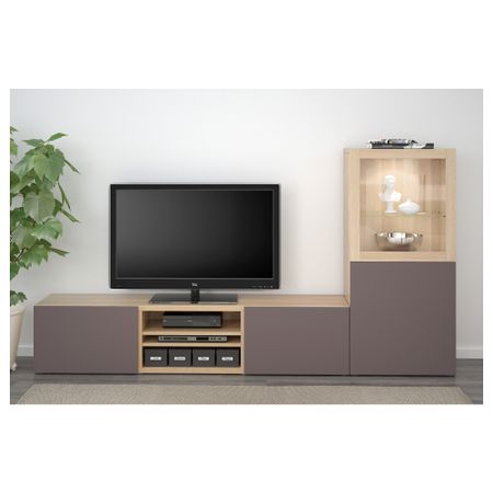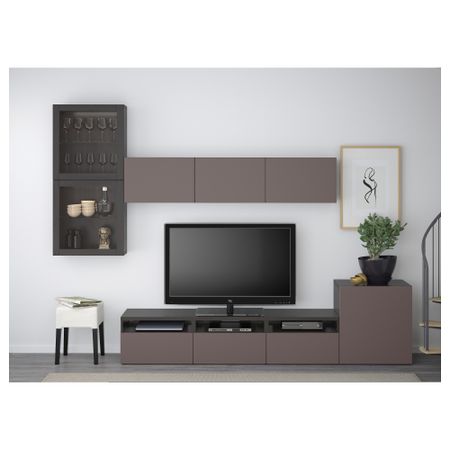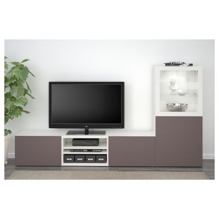 Шкаф для ТВ, комбинированный, стекляные дверцы БЕСТО, белый, Вальвикен темно-коричневый, прозрачное стекло (240x40x128 см)