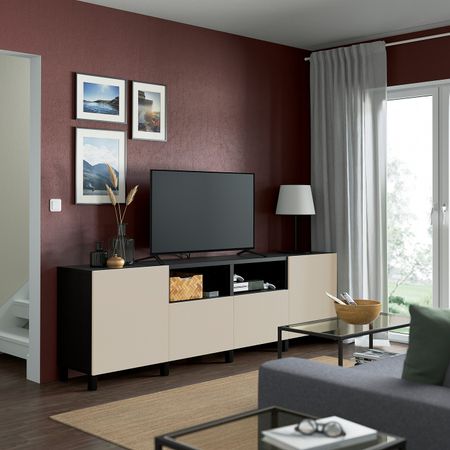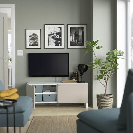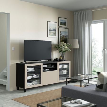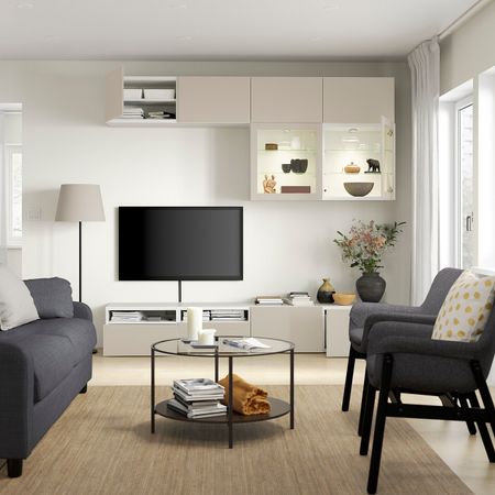 Комбинация для ТВ/стеклянные дверцы, белый Синдвик/Лаппвикен светлый серо-бежевый 240x42x190 см IKEA BESTÅ БЕСТО