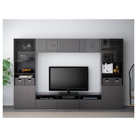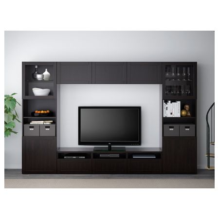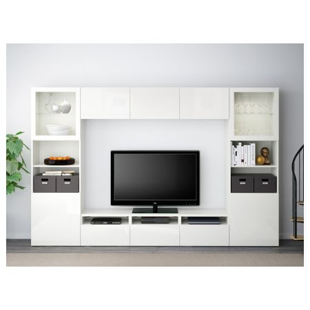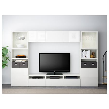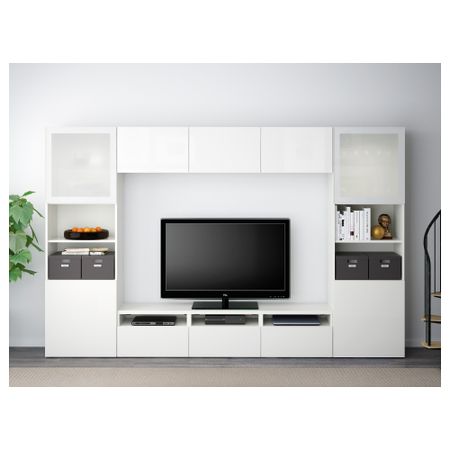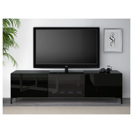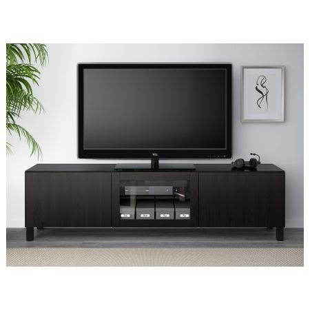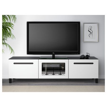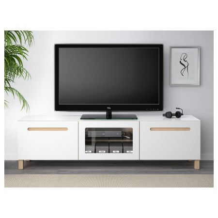 Тумба под ТВ, с дверцами БЕСТО, Лаппвикен под беленый дуб, прозрачное стелко (180x40x38 см)