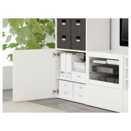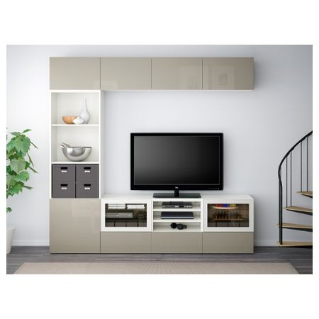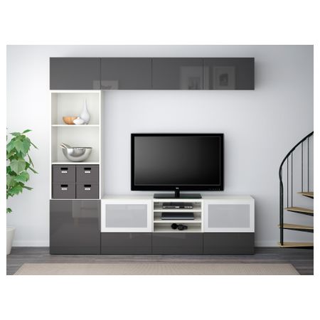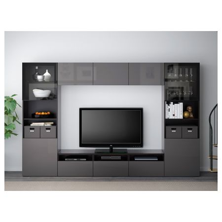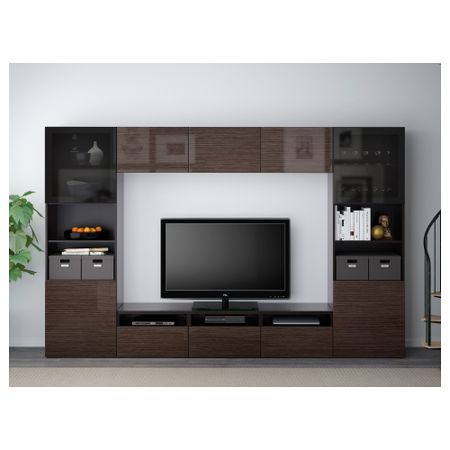 Шкаф для ТВ, комбинированный, стекляные дверцы БЕСТО, черно-коричневый, Сельсвикен глянцевый/коричневый дымчат стекло