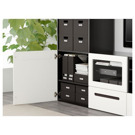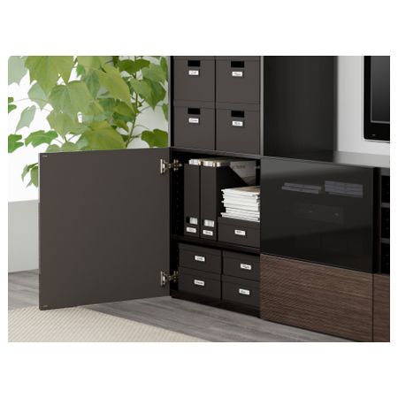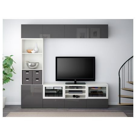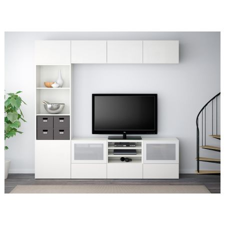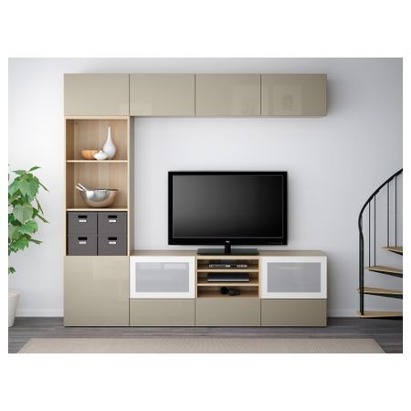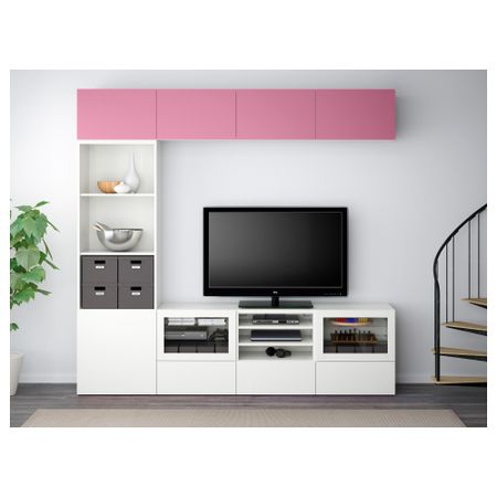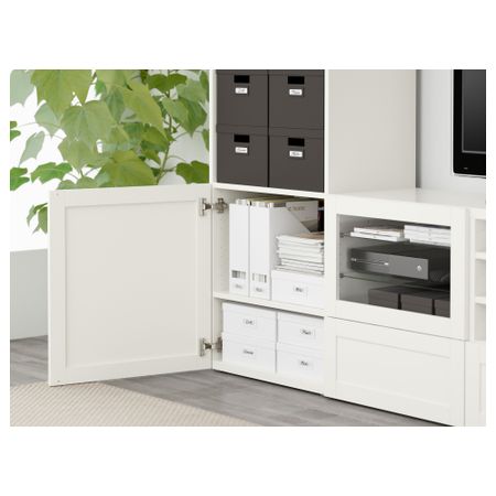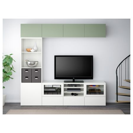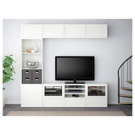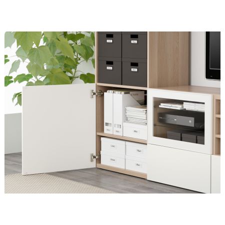 Шкаф для ТВ, комбинированный, стекляные дверцы БЕСТО, под беленый дуб, Сельсвикен глянцевый/белый прозрачное стекло (240x40x230
