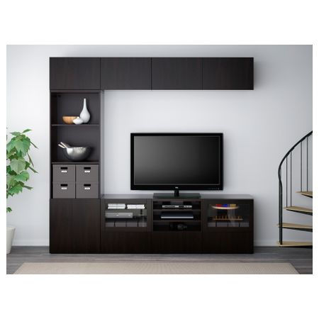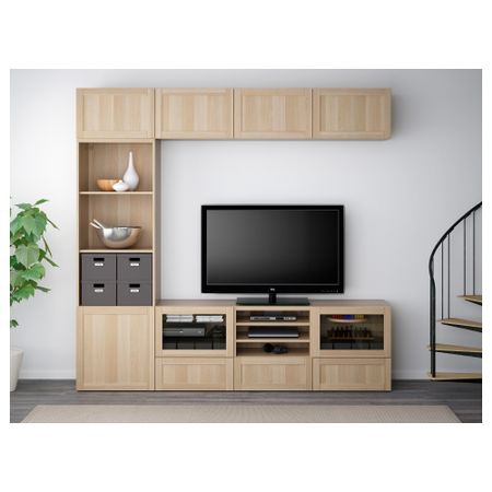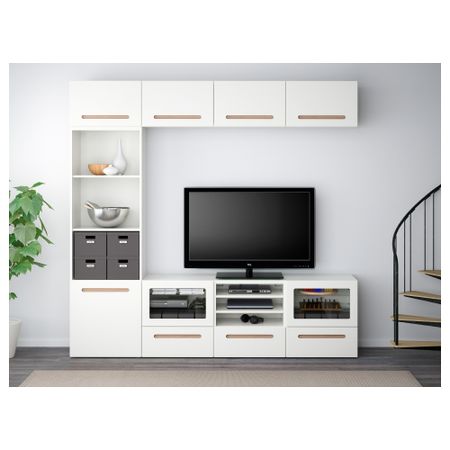 Шкаф для ТВ, комбинированный, стекляные дверцы БЕСТО, Марвикен белый прозрачное стекло (240x40x230 см)