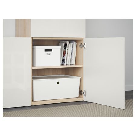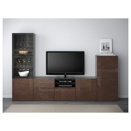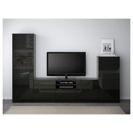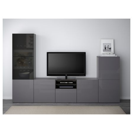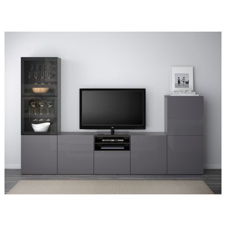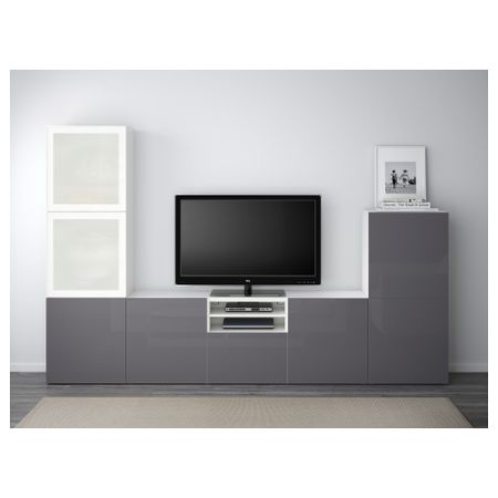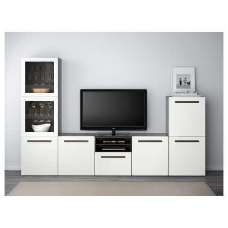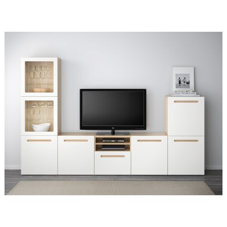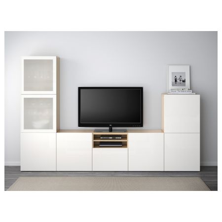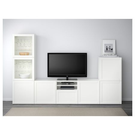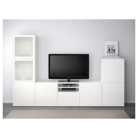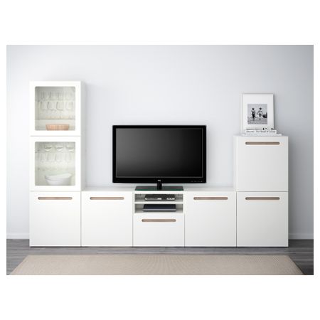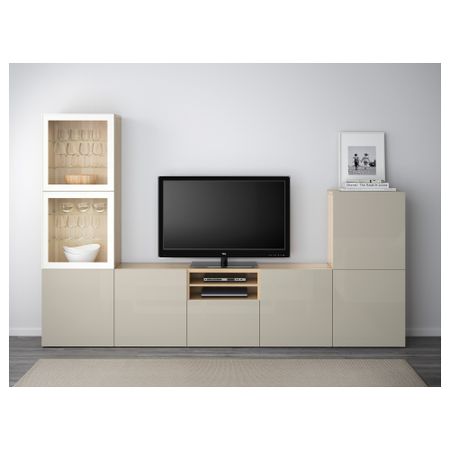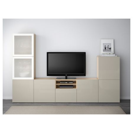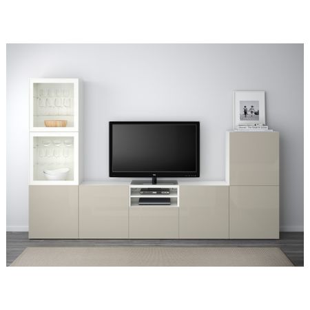 Шкаф для ТВ, комбинированный, стекляные дверцы БЕСТО, белый, Сельсвикен глянцевый/бежевый прозрачное стекло (300x40x192 см)