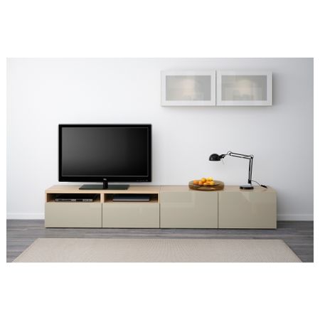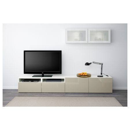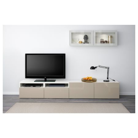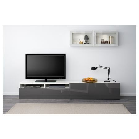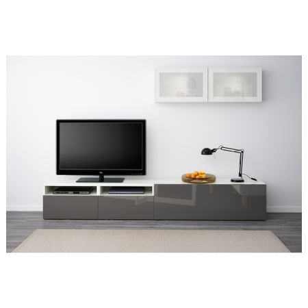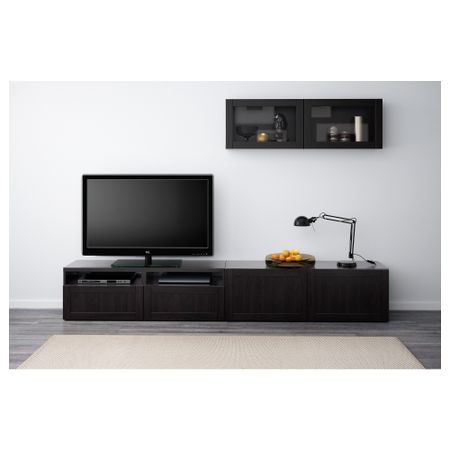 Шкаф для ТВ, комбинированный, стекляные дверцы БЕСТО, черно-коричневый, Сельсвикен глянцевый/коричневый дымчат стекло