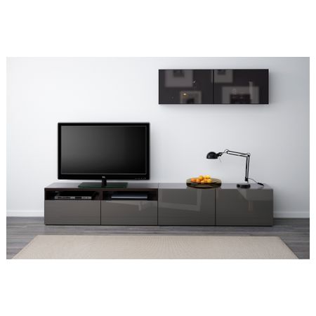Шкаф для ТВ, комбинированный, стекляные дверцы БЕСТО, черно-коричневый, Сельсвикен глянцевый/коричневый дымчат стекло