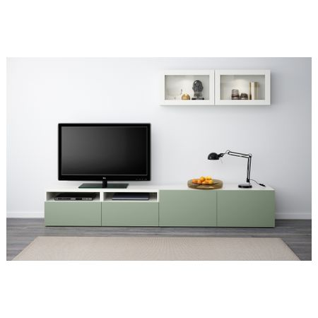 Благодаря доводчикам ящики и дверцы закрываются плавно и бесшумно. Эта комбинация для ТВ предоставит достаточно места для хранения, чтоб в вашей гостиной царил идеальный порядок. Размер: 240x20/40x166 см