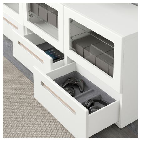 Тумба под ТВ, с дверцами и ящиками БЕСТО, белый, Сельсвикен глянцевый/бежевый матовое стекло (180x40x64 см)