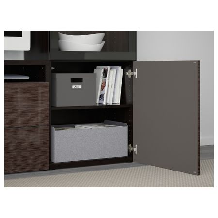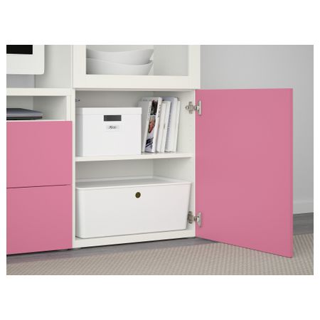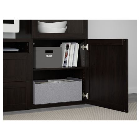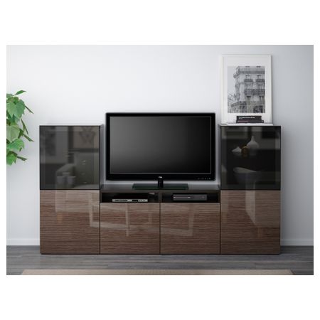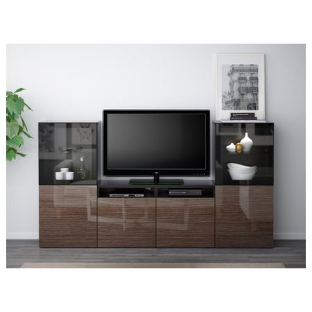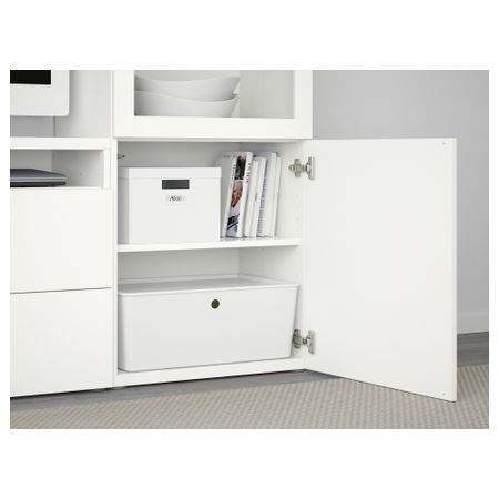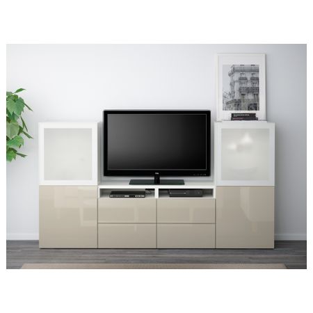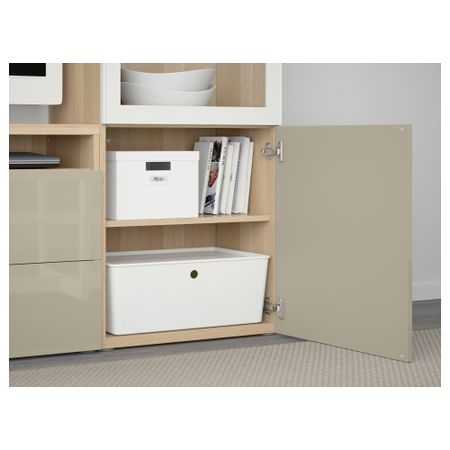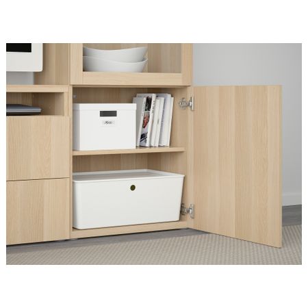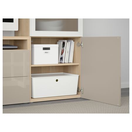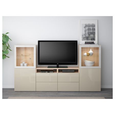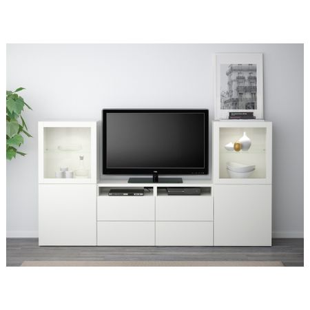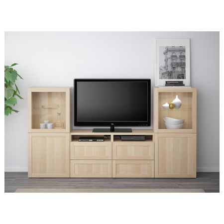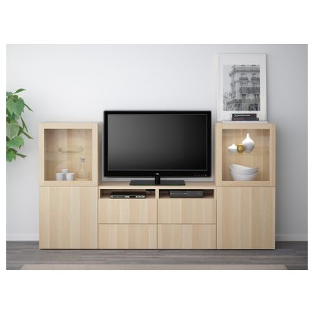 Шкаф для ТВ, комбинированный, стекляные дверцы БЕСТО, Ханвикен, Синдвик под беленый дуб, прозрачное стелко (240x40x128 см)