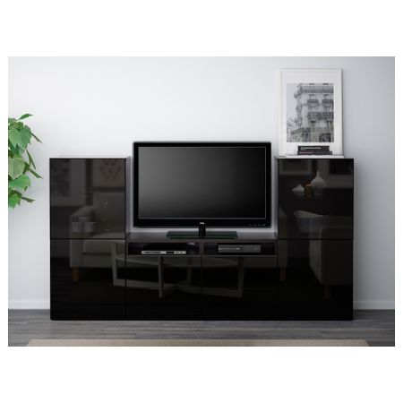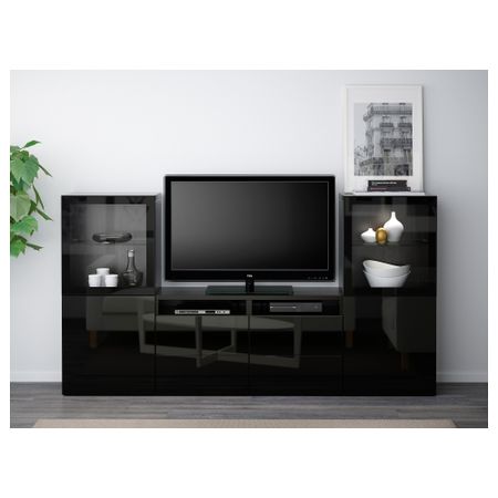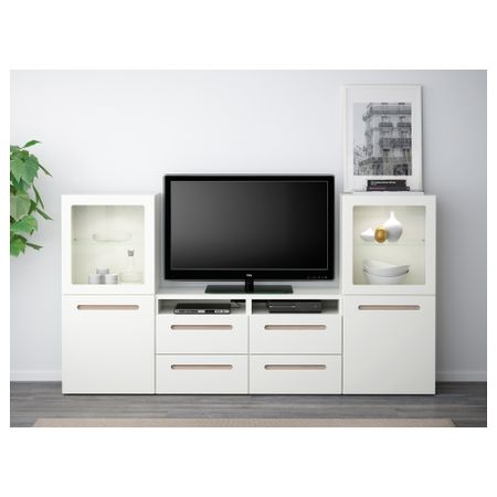 Шкаф для ТВ, комбинированный, стекляные дверцы БЕСТО, Лаппвикен зеленый, Синдвик белый прозрачное стекло (240x40x128 см)