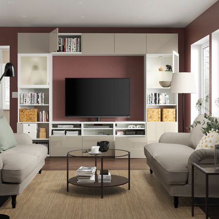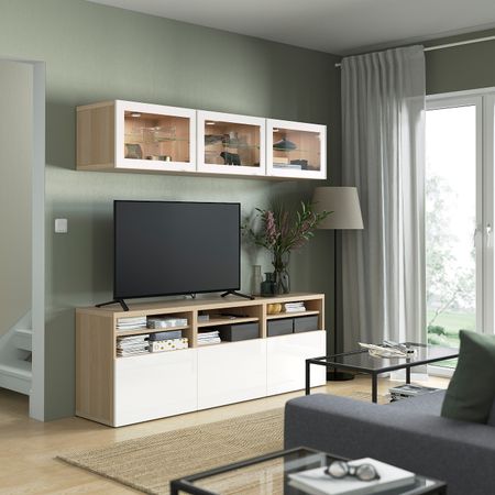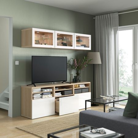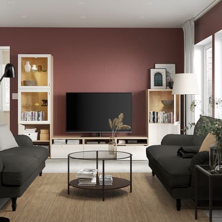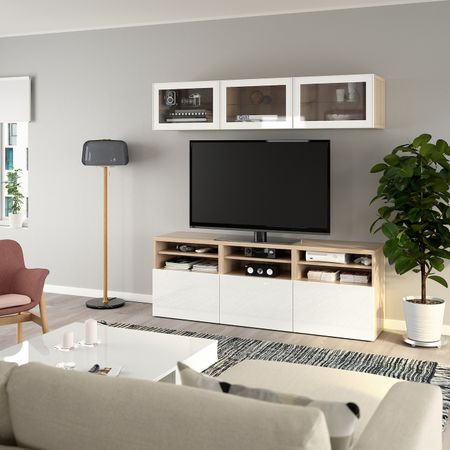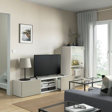 Шкаф для ТВ, комбинированный, стекляные дверцы, черно-коричневый/Лаппвикен черно-коричневый прозрачное стекло 300x42x211 см IKEA