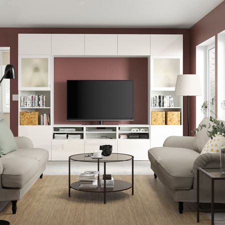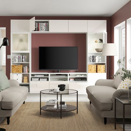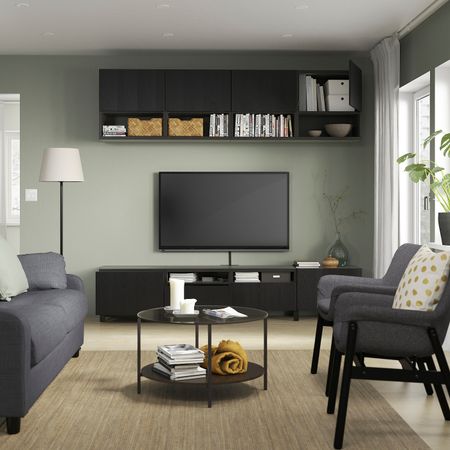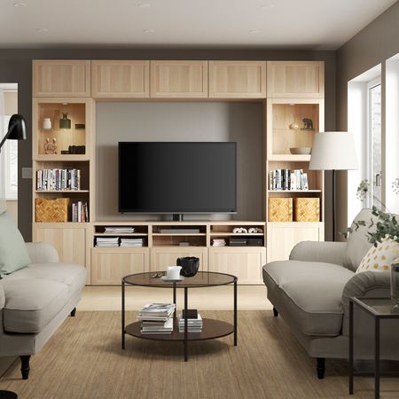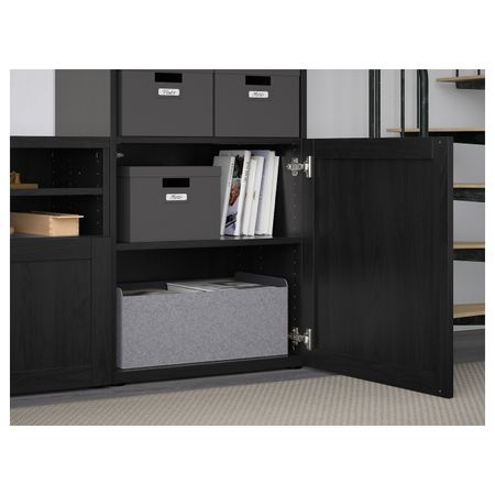 Рисунок древесных волокон на дверцах ХЕДЕВИКЕН позволяет создать выразительный орнамент на мебели БЕСТО.Специальное отверстие в верхней панели обеспечит удобное и компактное размещение проводов.