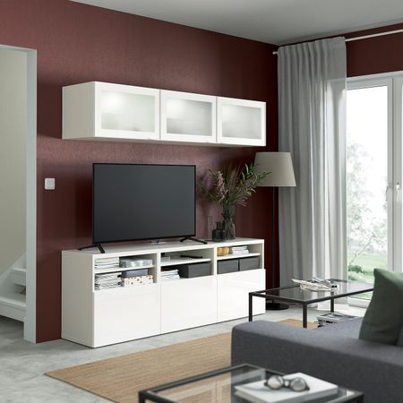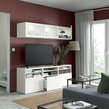 Тумба под ТВ, с дверцами и ящиками, белый/ХЕДЕВИКЕН/СТУББ дубовый шпон 240x42x74 см IKEA BESTÅ БЕСТО