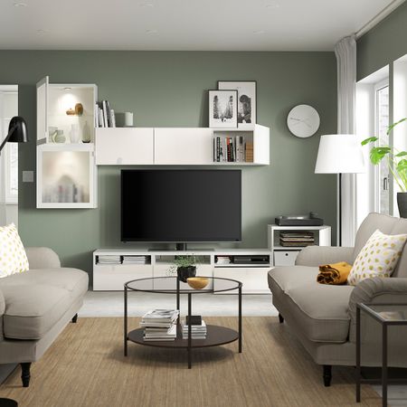 Шкаф для ТВ, комбинированный, стекляные дверцы, черно-коричневый/Сельсвикен глянцевый, черный дымчатое стекло 240x42x231 см IKEA