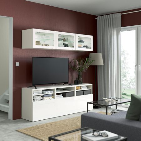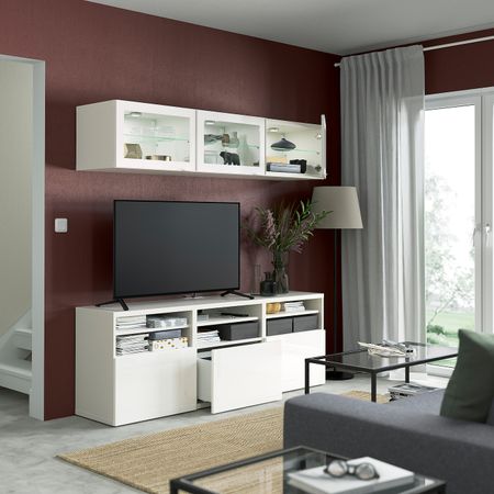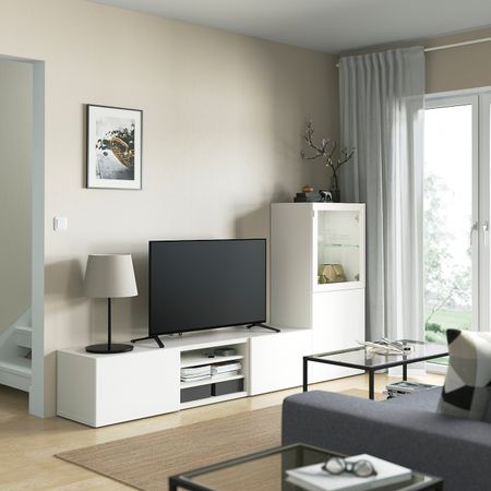 Комбинация для ТВ/стеклянные дверцы, под беленый дуб Синдвик/Ханвикен под беленый дуб, прозрачное стелко 180x42x192 см IKEA