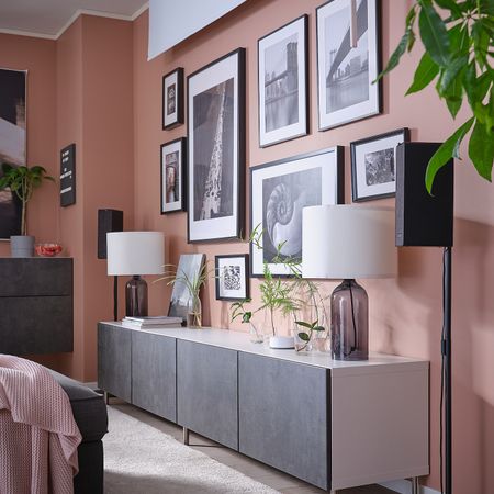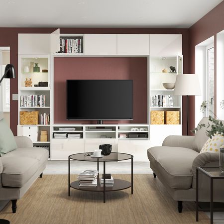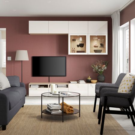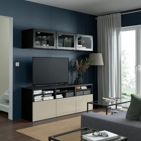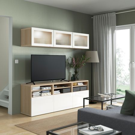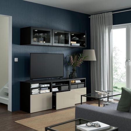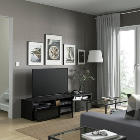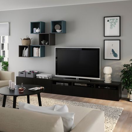 Комбинируйте открытое и закрытое хранение в зависимости от потребностей.Благодаря интегрированному нажимному механизму ящик открывается легким нажатием.Мы рекомендуем, чтобы тумба была немного шире, чем установленный на ней телевизор.