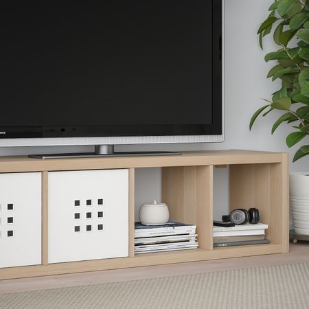 Глухие дверцы защитят содержимое от пыли.Отверстия для проводов на задней панели. Провода не на виду, но всегда под рукой.Ящики с плавным ходом и стопором.Мы рекомендуем, чтобы тумба была немного шире, чем установленный на ней телевизор.