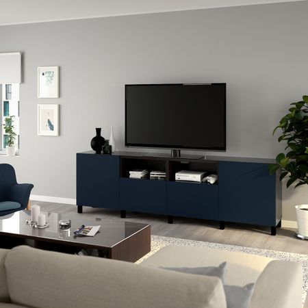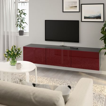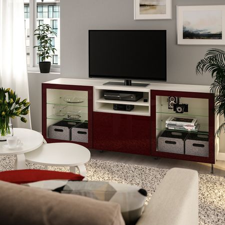 Шкаф для ТВ, комбинированный, стекляные дверцы, черно-коричневый Сельсвикен, темный красно-коричневый прозрачное стекло