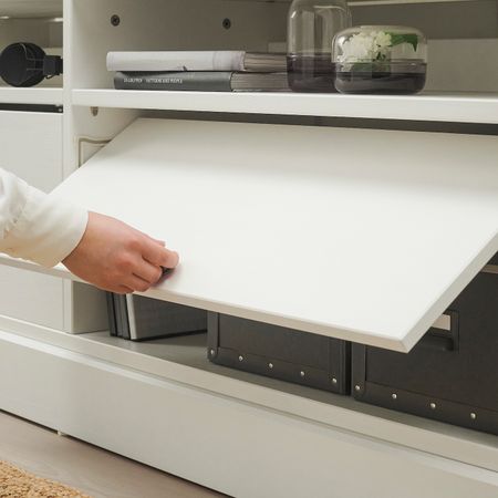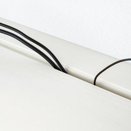Благодаря доводчикам ящики закрываются плавно и бесшумно. Благодаря нескольким отверстиям на задней панели тумбы под ТВ провода от телевизора и других устройств всегда будут под рукой, но не на виду.