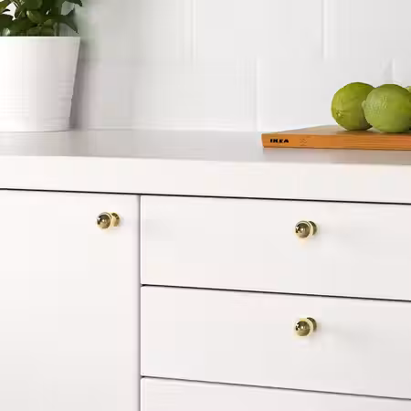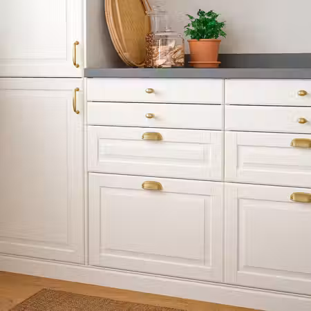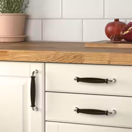 Ручки БАГГАНЭС лаконичной обтекаемой формы выполнены в современном стиле. Цвет вы можете выбрать на свой вкус в соответствии с вашим интерьером – черный, цвета латуни или нержавеющей стали.