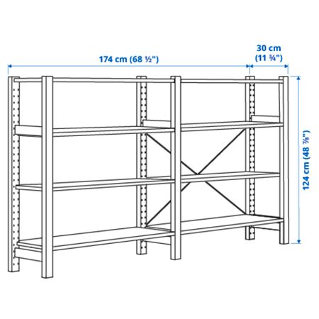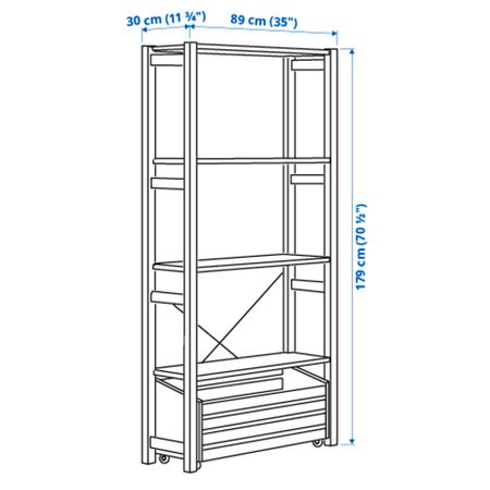 3 секции, полки, 259x30x179 см, сосна IKEA IVAR ИВАР