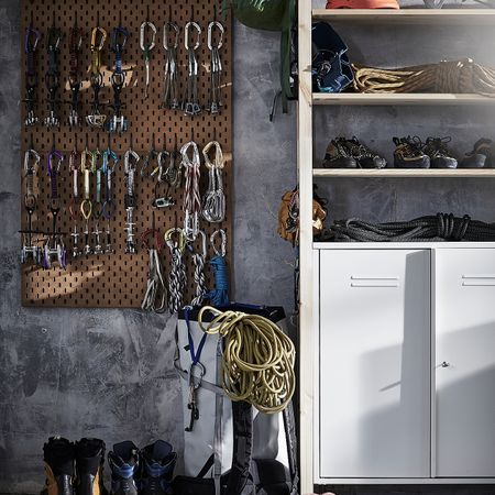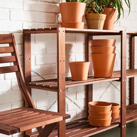 Необработанный массив дерева – прочный натуральный материал, который можно покрыть маслом или воском для повышения износостойкости. Полки можно устанавливать на разном уровне в соответствии с потребностями хранения.