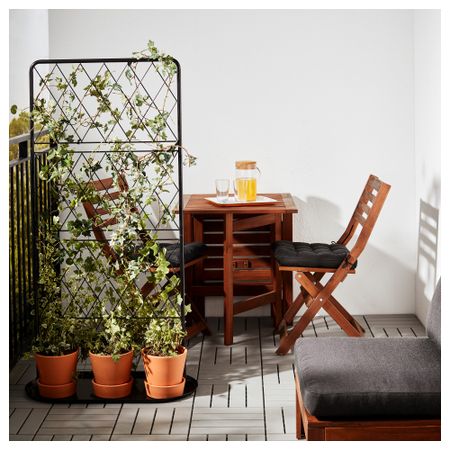 Шпалера на опоре обеспечивает поддержку для вьющихся растений в горшках. Вы можете создать в саду атмосферу уюта и уединенности, пустив по шпалере вьющиеся растения. Можно поставить 3 кашпо (макс. внешний диаметр 17 см). Ширина: 78 см.