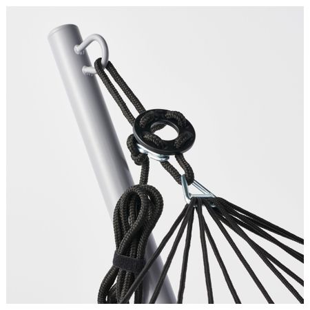 Легко повесить с помощью прилагающихся крюков; не требуется завязывать узлы. Книги журналы и другие мелочи можно хранить в боковом кармане гамака. Можно дополнить опорой для гамака ГОРЭ.