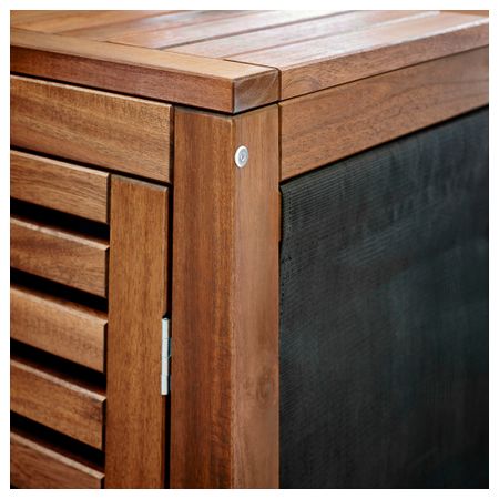 Модуль ЭПЛАРО/КЛАСЕН обеспечивает дополнительное место для хранения. Легко перемещать. Также удобно использовать рядом с грилем ЭПЛАРО/КЛАСЕН – для размещения посуды и аксессуаров. Мебель обработана полупрозрачной морилкой в несколько слоев. Размер: 77x88 см
