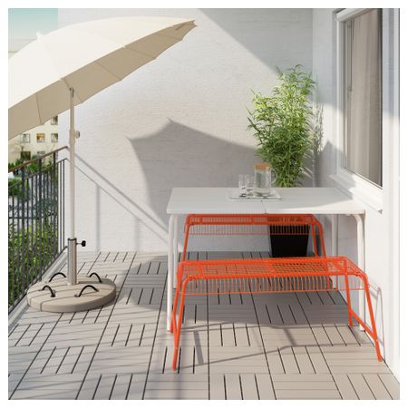 Прочная скамья проста в уходе, так как изготовлена из стали с порошковым покрытием. Можно также использовать в ванной и других помещениях с повышенным уровнем влажности. Материалы, из которых изготовлена эта садовая мебель, не требуют ухода.