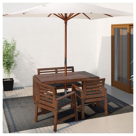 Рекомендовано только для использования на улице. Массив акации, Акриловая морилка. Стол с откидными полами, садовый/садовая скамья/садовая скамья со спинкой: 100 % возобновляемый материал (кроме креплений).
