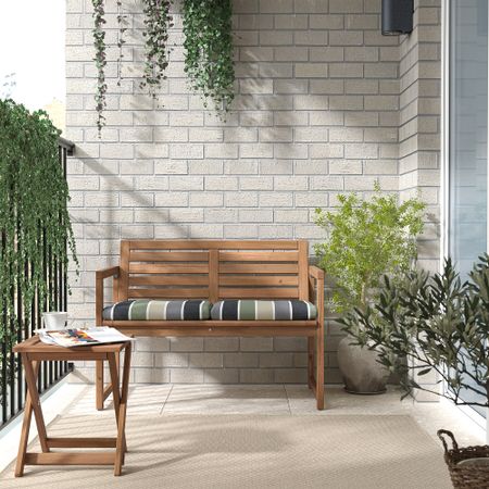 Изготовлено из прочной возобновляемой древесины акации, полученной из экологичных источников. Эта мебель занимает мало места при хранении, так стол и стулья складываются. Мебель обработана полупрозрачной морилкой.