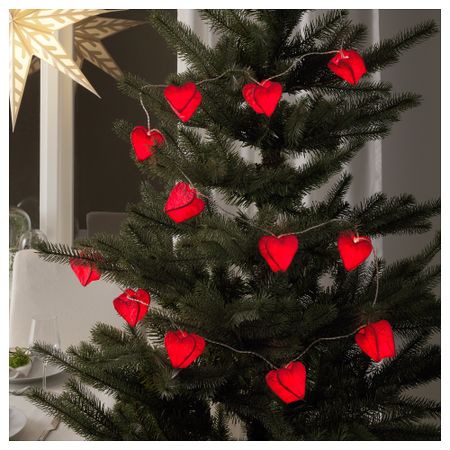 Гирлянда, 12 светодиодов СТРОЛА, с батарейным питанием, сердце красный