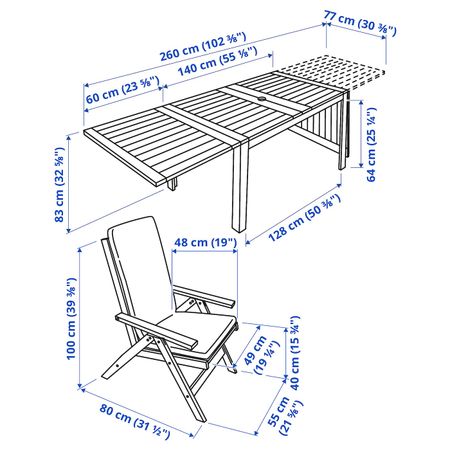 Стол + 1 складной стул, для/сада, светло-коричневая морилка IKEA ASKHOLMEN АСКХОЛЬМЕН