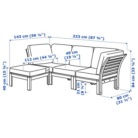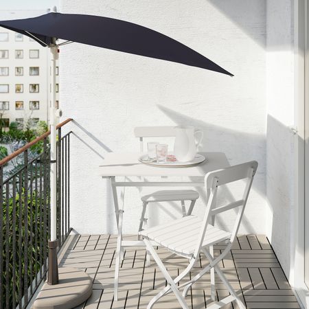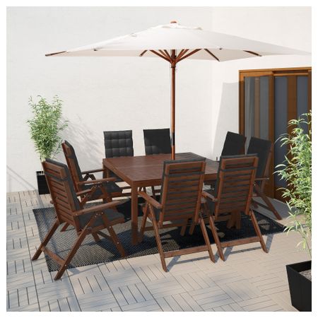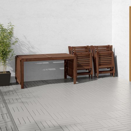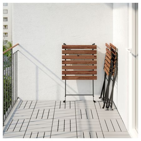 ЭПЛАРО 592.289.25 Стол+2 складных стула для сада, коричневая морилка, Иттерон синий