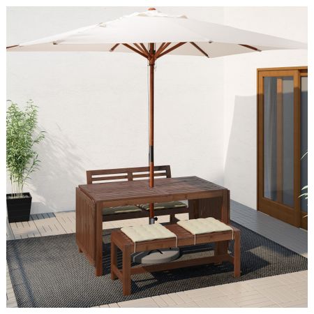 Стол+2 скамьи, для сада ЭПЛАРО, коричневая морилка, Холло бежевый