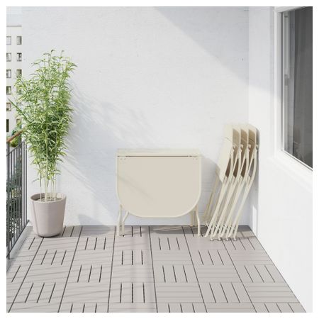 Эта мебель занимает мало места при хранении, так стол и стулья складываются. Стол и стулья не требуют сборки, поэтому вы можете начать пользоваться ими сразу же после покупки. Прочная мебель из стали с порошковым покрытием проста в уходе.