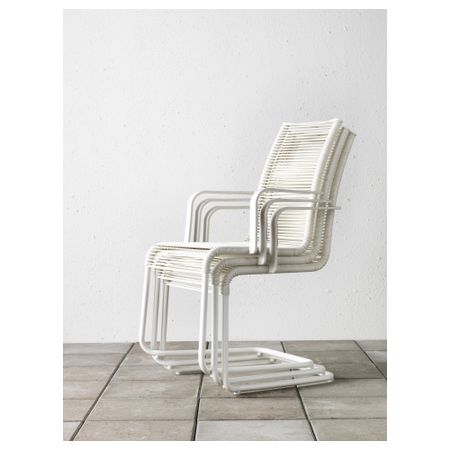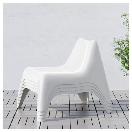 Кресло из прочного, устойчивого к выцветанию, воздействию УФ-лучей и растрескиванию. Штабелируются, что позволяет экономить место при хранении. Дождевая вода стекает благодаря отверстию в сиденье.