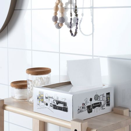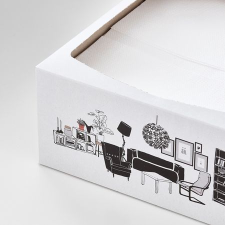 Эти салфетки продаются в коробке, украшенной изображениями культовых товаров в ИКЕА. Салфетки удобно использовать дома, в машине или на пикнике.Двухслойная бумага с высокой впитываемостью позволяет сократить расход материала.