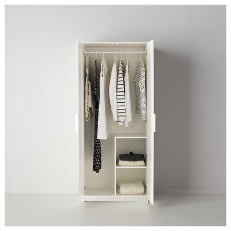 Подходит для хранения короткой и длинной одежды на плечиках, а также сложенных вещей. Для организации внутреннего пространства можно дополнить набором из 3 коробок СКУББ. Регулируемые петли обеспечивают правильную фиксацию дверцы. Размер: 78x190 см