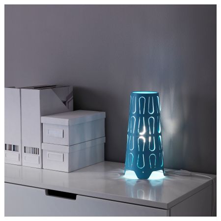 Создает декоративное освещение в комнате; свет проходит через перфорированный абажур. Загибая перфорированные элементы абажура внутрь или наружу, можно создать свой вариант светового орнамента.