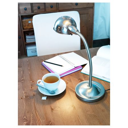 Обеспечивает направленное освещение для чтения. Регулируемый штатив и плафон позволяют легко изменить направление освещения. Лампочка продается отдельно. Мы рекомендуем шарообразный молочный светодиод E27 400 лм.